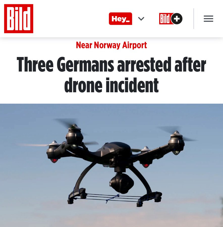 Трое граждан Германии были арестованы в Норвегии: Трое мужчин, как утверждается, запустили беспилотник во вторник в закрытой пятикилометровой зоне вокруг аэропорта Рёссволль.