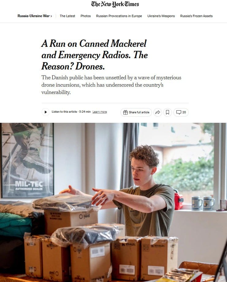 ▪️Датские СМИ сообщают, что другие магазины испытывают ажиотаж за экстренными продуктами питания, радиоприемниками, рисом и консервированной скумбрией.