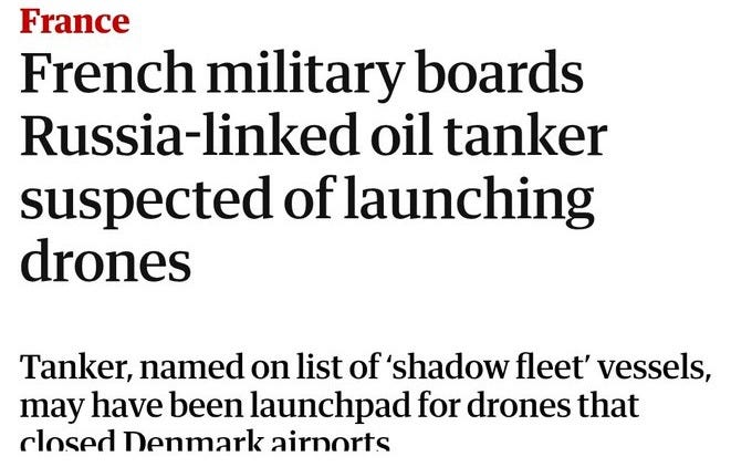 Мы как никогда ясно видим, как работает механизм конфронтации и эскалации: над Данией был проведен операционный запуск беспилотника, чтобы обвинить в этом Россию, а теперь Франция захватила российский «теневой танкер» возле своих вод, потому что ее подозревают в запуске беспилотников, вызвавших такую панику в Дании.