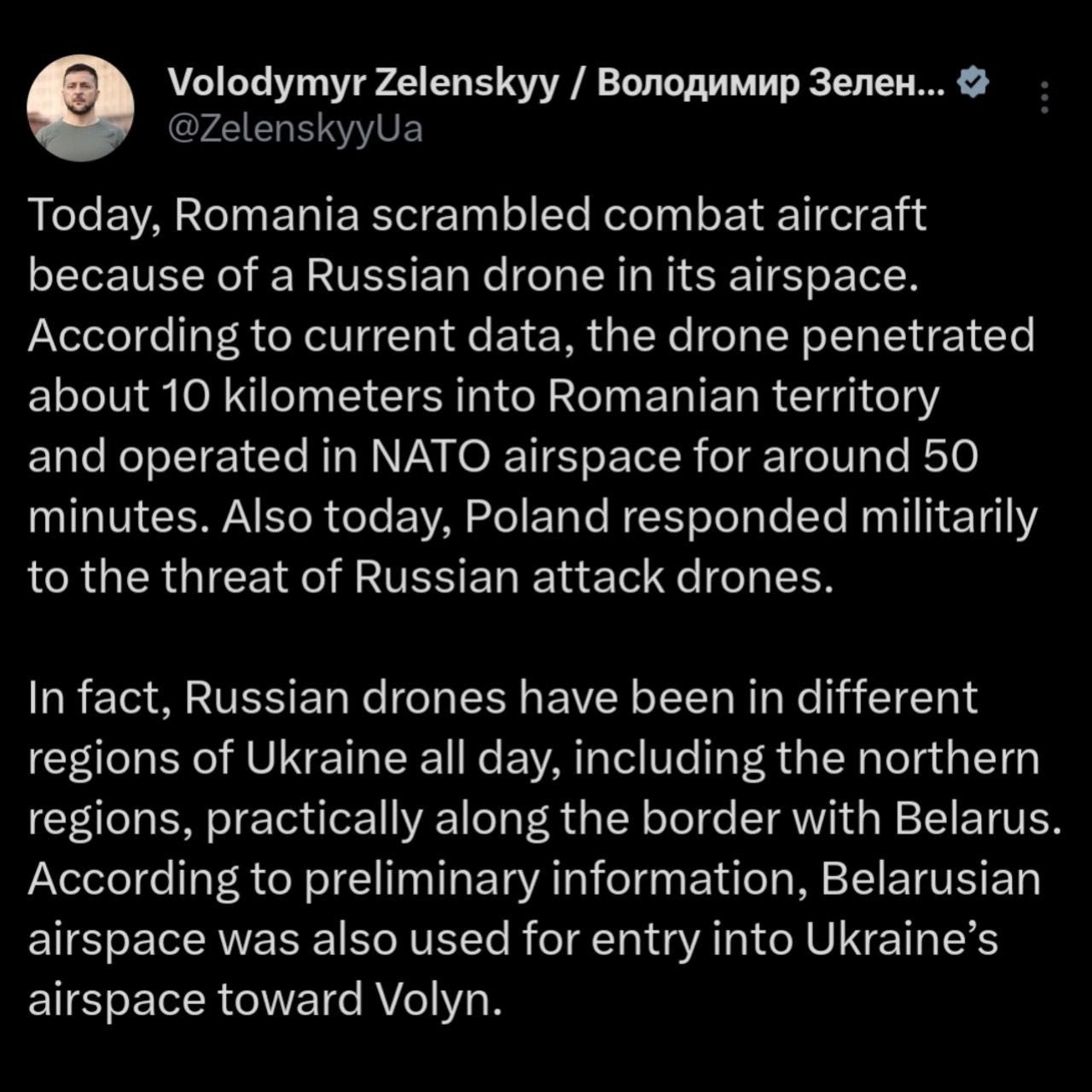 Конечно, нельзя сказать со стопроцентной уверенностью: может быть, Россия действительно пытается проверить «оборону» НАТО или просто подтолкнуть противника к ответной реакции, возможно, даже в качестве сигнала о прекращении провокаций на российской границе. Но это, безусловно, похоже на согласованную информационную кампанию, особенно с учетом того факта, что мистификация на прошлой неделе уже была развенчана, а сами польские власти признали, что «беспилотник», который якобы попал в польский дом, на самом деле был польской зенитной ракетой, выпущенной с F-16: