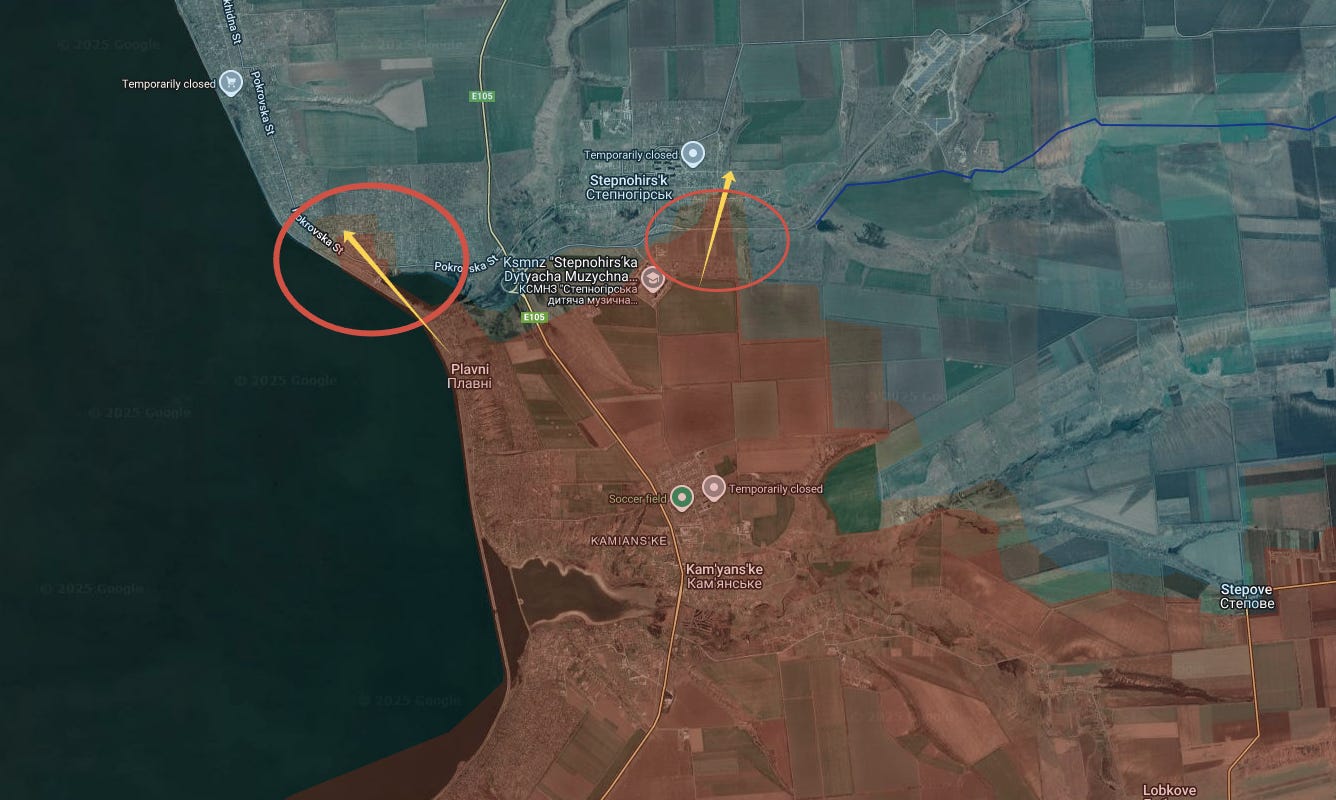 На всем пути на запад на Запорожском фронте российские войска совершили этот неожиданный прорыв из Плавни в северный населенный пункт Приморск, а также немного углубились в Степногорск, который они только недавно начали штурмовать: