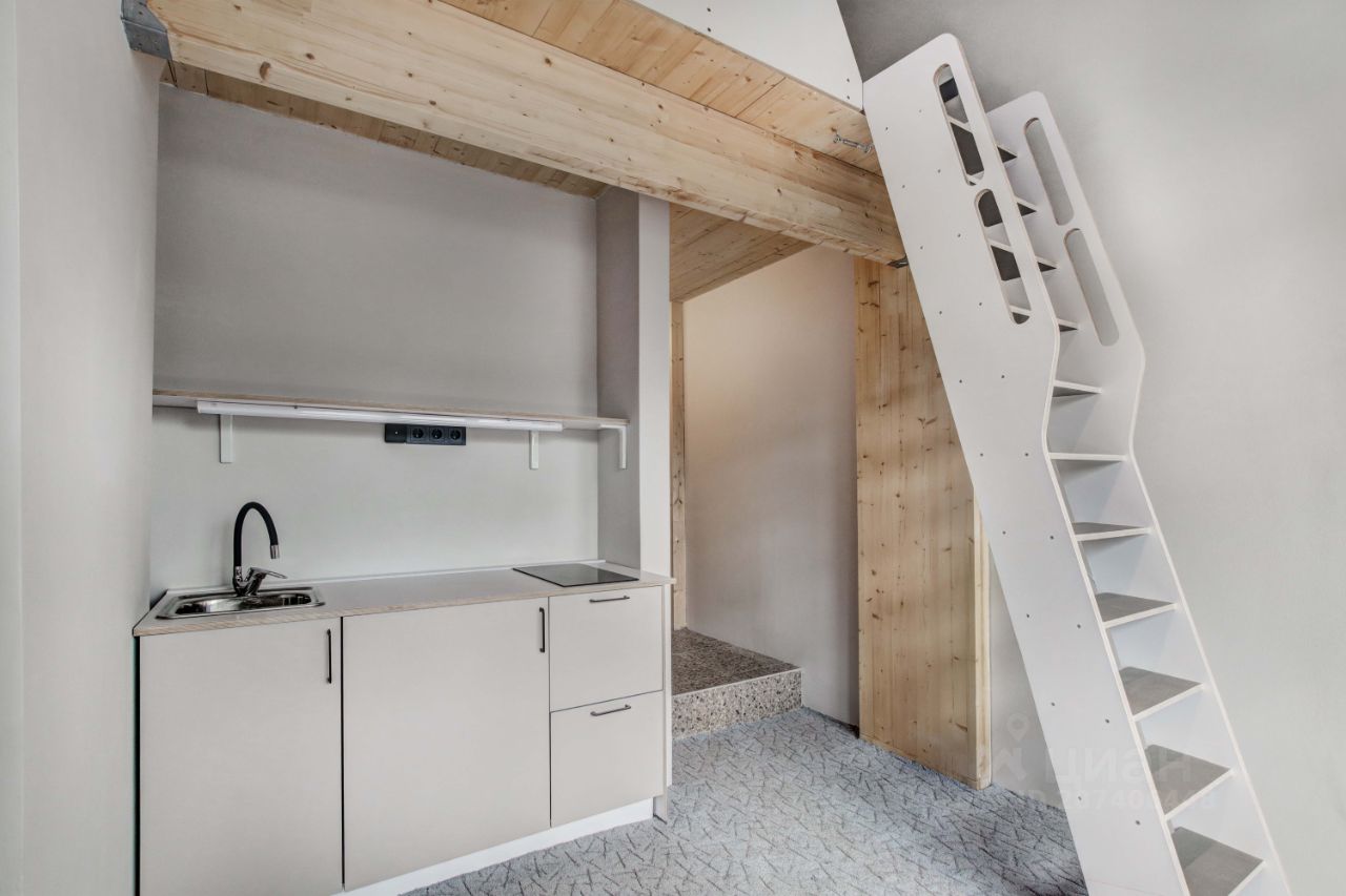 Высота потолков 4,2 м позволяет во всех апартаментах разместить спальное место на оборудованной антресоли.