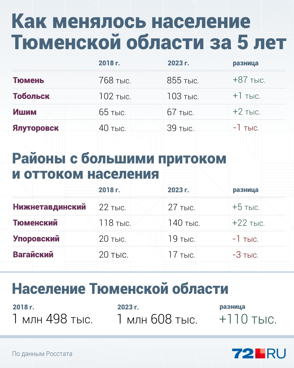 Регион входит в число ТОП городов по переезду на ПМЖ. В городской администрации считают, что Тюмень подойдет к миллиону в 2029 году.