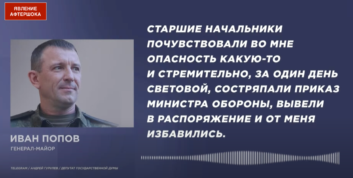 Я говорю про "бунт генералов", который проявился буквально сразу после событий связанных с походом на первопрестольную хорошо вооружённой колонны одной известной частной военной компании.