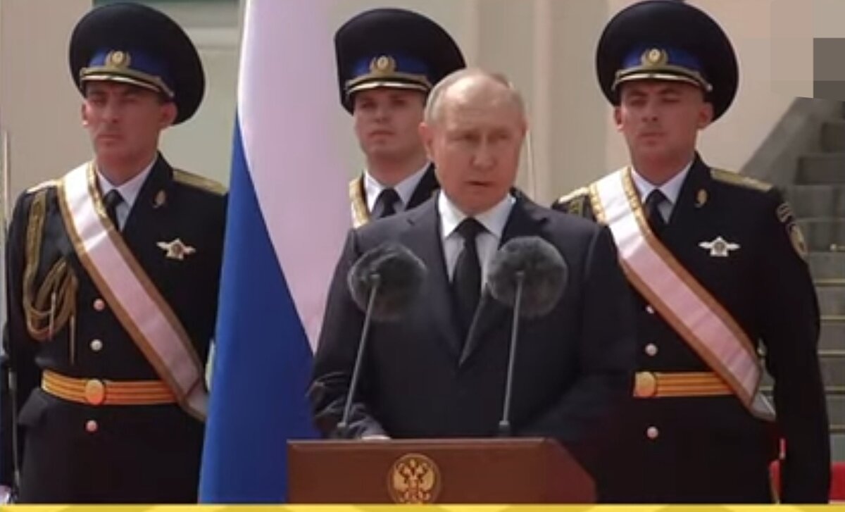 Это была предыстория. Вернёмся в наши дни. 27 июня 2023 года президент Путин выступил с Красного крыльца перед представителями силовых ведомств в Кремле с крыльца Грановитой палаты.