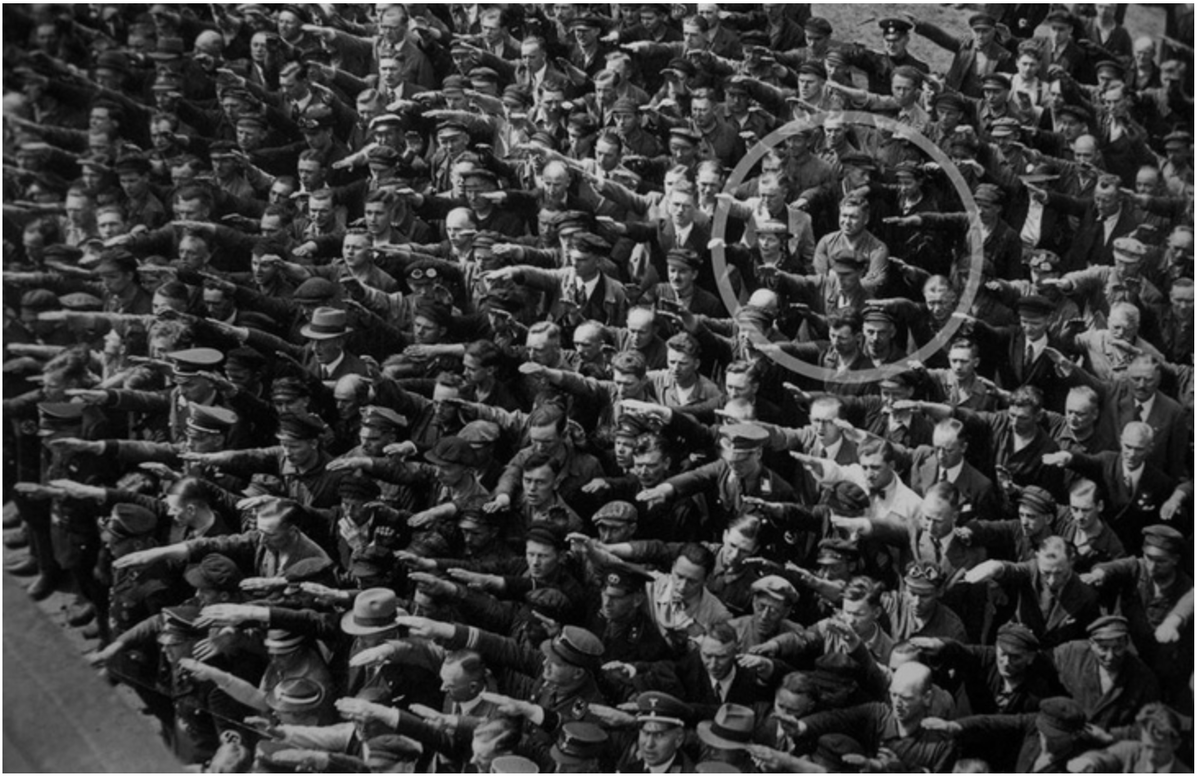Среди огромной толпы zигующих патриотов стоит Август Ландмессер. Рабочий, сварщик. Его руки спокойно сложены на груди, на лице тихая усмешка. Он оказался единственным кто не побоялся идти против системы. Не смотря на то, что ему было очень хорошо известно как система расправляется с "предателями".