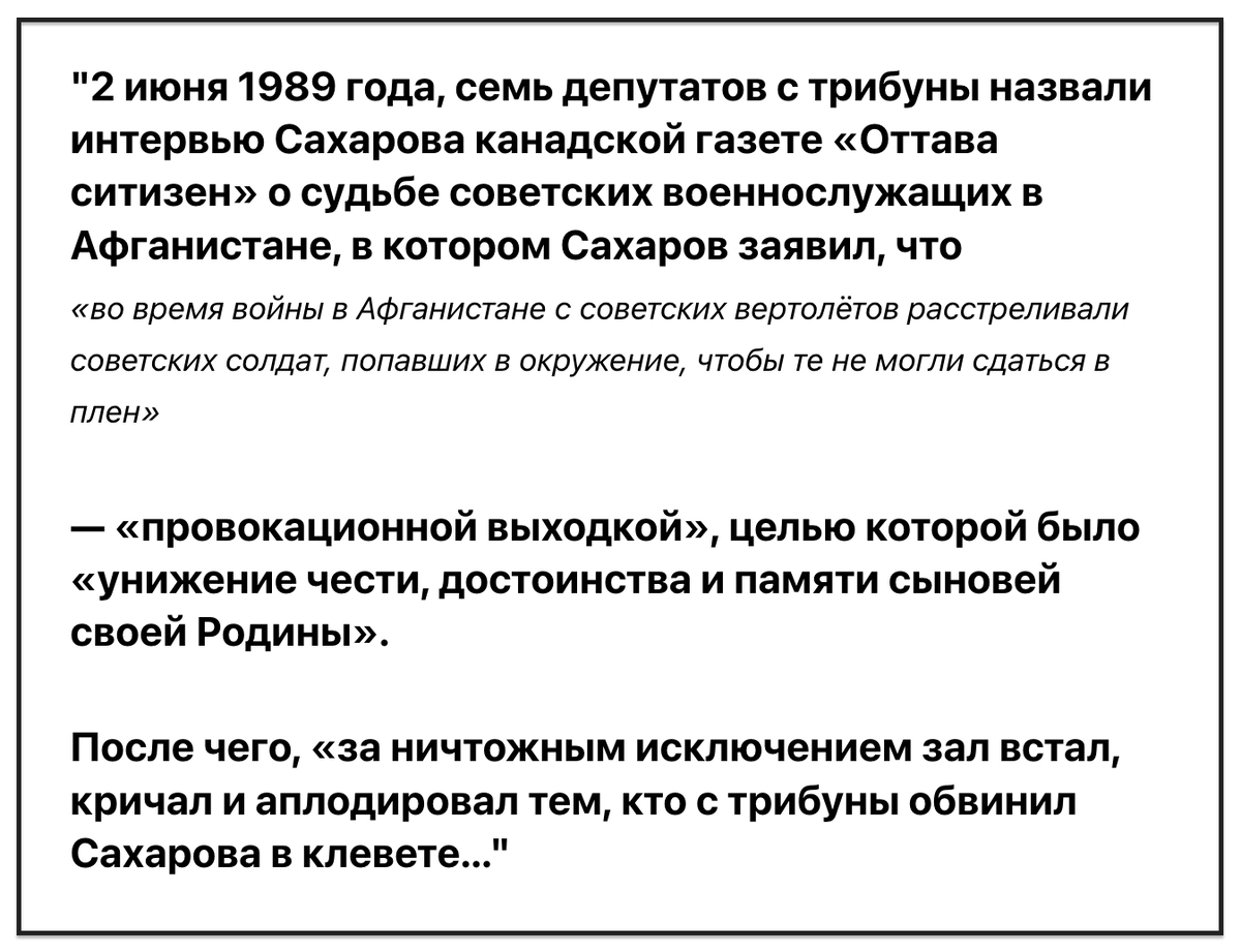 В наши дни, за свою антивоенную позицию, академик Сахаров в лучшем случае получил бы клеймо "иноагента". А в худшем закончил бы как другие знаковые фигуры нашего времени получившие немалые сроки.