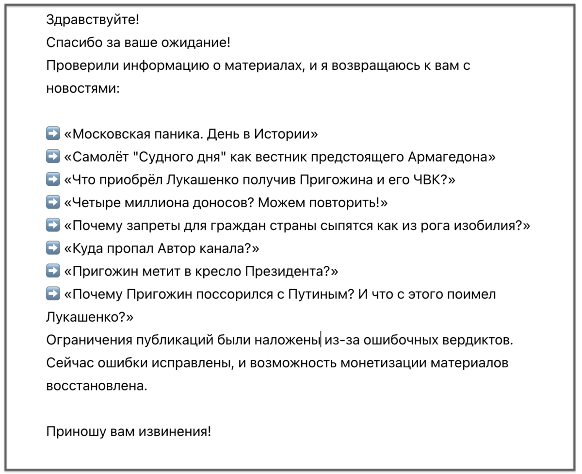 Именно с этих строк из Службы технической поддержки платформы Дзен начался мой сегодняшний день. Чертовски приятно когда сторона допустившая ошибку признаёт это и приносит свои извинения. Даже, несмотря на длительные споры относительно данных публикаций получивших ограничения в показах и других важных моментах для автора канала.