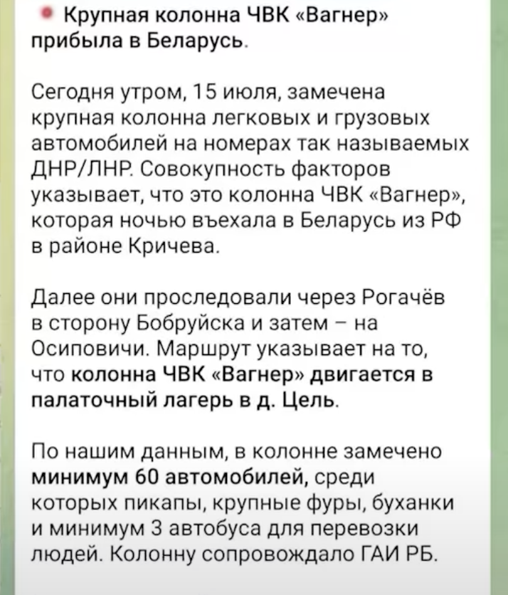 Учитывая, что лагерь расчитан на 9.000 человек, а некоторая часть ЧВК уже выступили в роли инструкторв для ВС РБ, то эта колонна (которую, как говорят, сопровождает ГАИ Беларуси с целью продемонстрировать населению - всё под контролем и согласовано) может оказаться достаточно внушительной силой в случае очередной "операции".