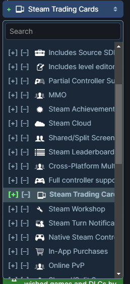 1. Переходим по ссылке и в фильтрах по функциям выбираем "Торговые карточки Steam".