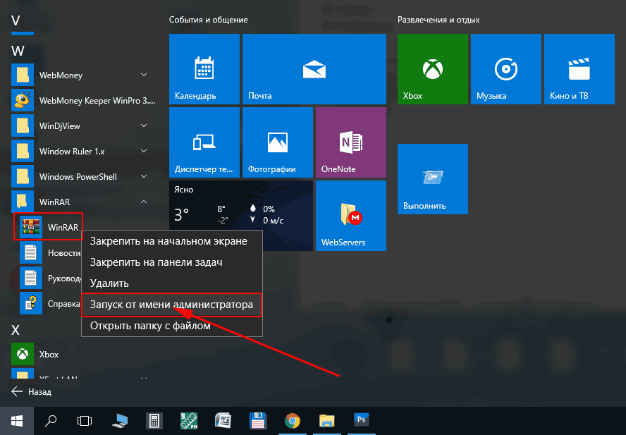 Ну и раз мы упомянули о защите архива от повреждений, рассмотрим способ восстановления архива, если это все же произошло. Для восстановления нужно запустить WinRAR из меню - ПУСК - , найдя нужную папку в разделе - Программы - или - Приложения - и лучше запустить программу от имени администратора.