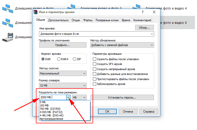 На самом деле у программы WinRAR имеются и другие инструменты, например можно оставить комментарий при создании архива и т.п.. Еще одной, на мой взляд очень полезной функцией, является разбивка файла на архивы нужного размера. Например облако mail.ru не позволяет хранить файлы размером более 2гб. Ну а вы хотите залить туда видео или игру размером 5 или более гигабайт. Щелкаете по папке или файлу, который нужно разбить, правой кнопкой мыши - Создать архив... . Выбираете снизу пункт - Разделить на тома размером: - и вписываете нужный размер в мегабайтах, либо выбираете размер из выпадающего списка. Таким образом, после окончания работы у вас появятся несколько архивов нужного размера, которые вы можете залить в облако.