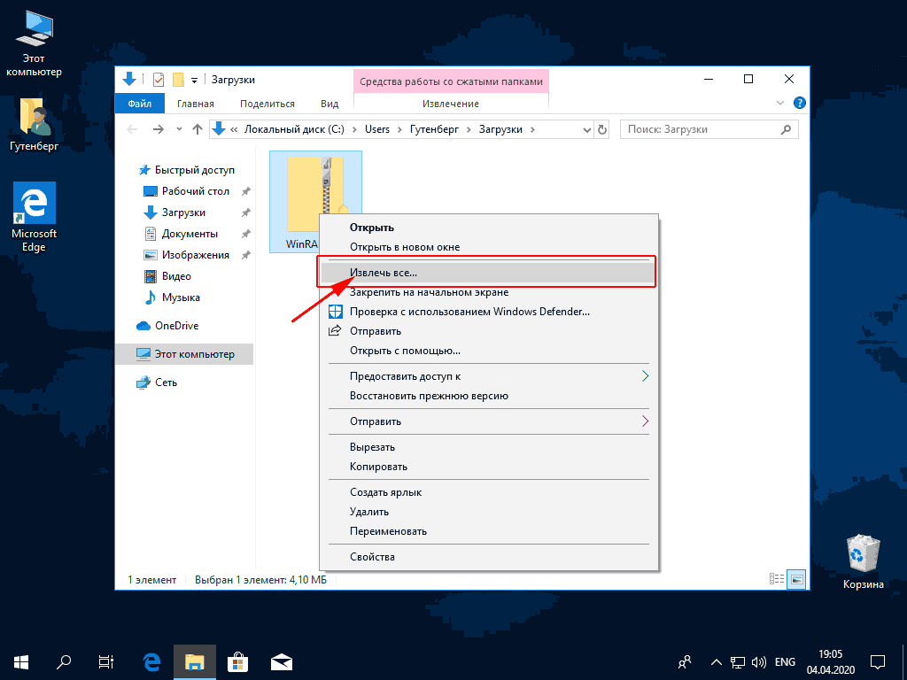 Щелкаем по скаченному архиву правой кнопкой мыши и выбираем опцию - Извлечь всё. Распаковываем файлы.