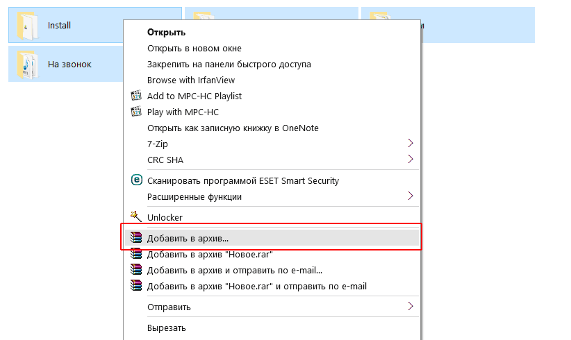 Итак, выделяем папки и щелкаем по ним правой кнопкой мыши, выбираем команду - Добавить в архив.