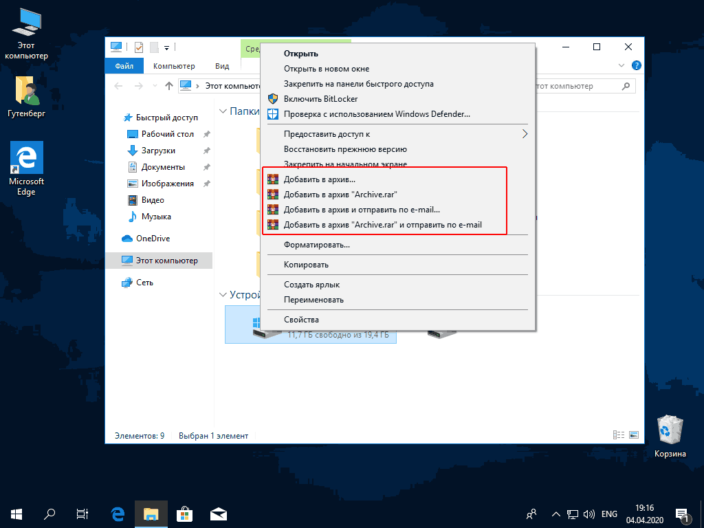 После установки, при щелчке на любой папке или файле правой кнопкой мыши, в контекстном меню появятся команды архиватора WinRAR, с помощью которых их можно быстро упаковать.