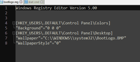Наконец вот что представляет из себя пакетный файл - start.cmd -. Сначала он запускает sfx-архив с картинкой, которая распаковывается и забрасывается по адресу, затем он запускает рег-файл, который пропишет нужную нам информацию в реестр, после этого скрипт завершает работу.