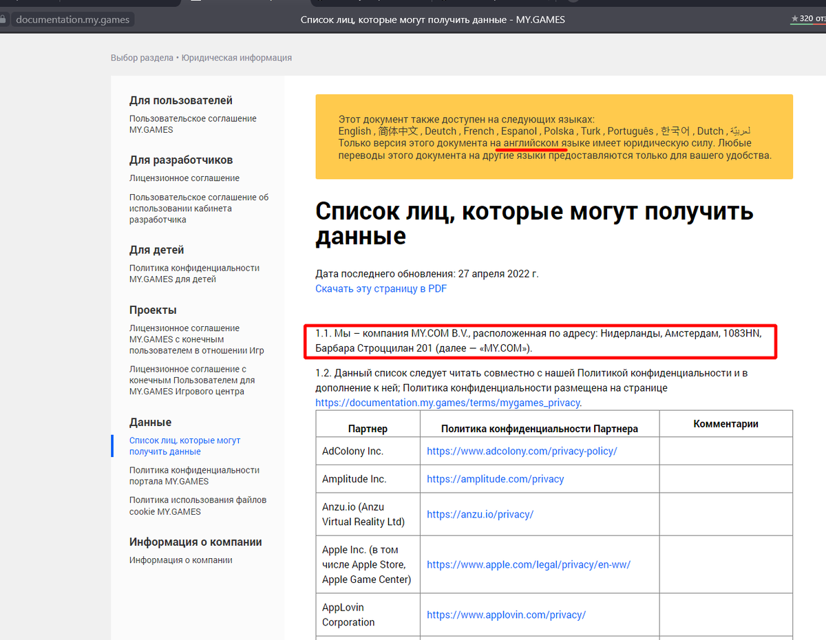 Вот тот документ, в котором my.games рассказывает, что будет передавать данные пользователей экстремистам, призывавшим к убийству русских людей.