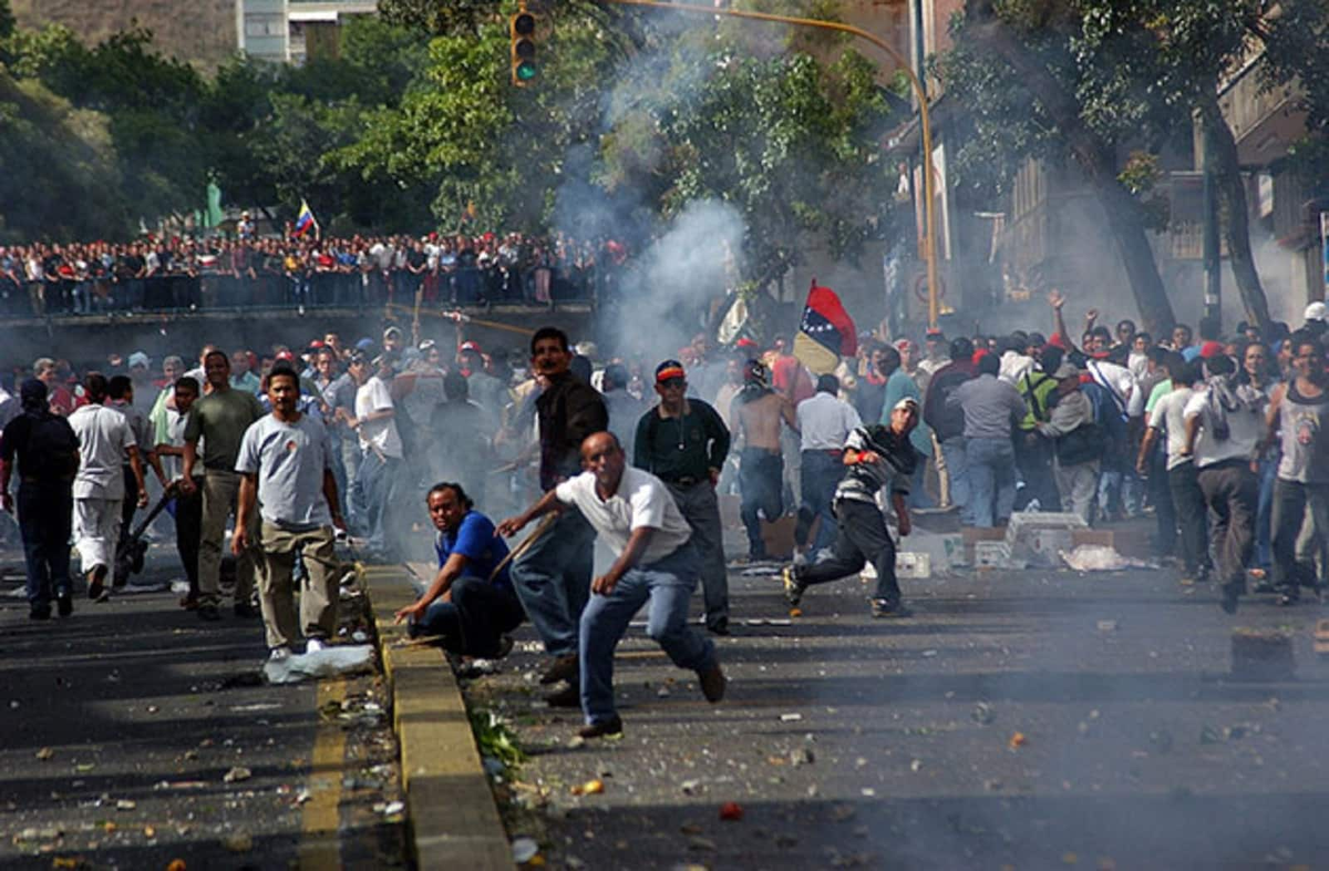 2002-2004 – Венесуэла. В 2002 г. там был проамериканский переворот, оппозиция незаконно сместила популярного президента Уго Чавеса. Уже на следующий день началось народное восстание в поддержку президента, Чавеса вызволили из тюрьмы и вернули на пост. Сейчас там идёт борьба между правительством и поддерживаемой Америкой оппозицией. В стране хаос и анархия.