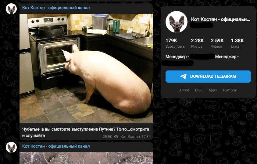 Да, я понимаю, что телеграм-каналы последние двое фигурантов, скорее всего, сами и не ведут. Хотя, тот же Кот и запомнился непонятными наездами на Осташко в своих видео.