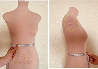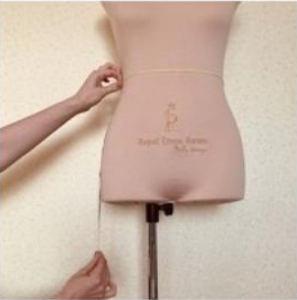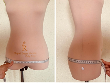 Сантиметровая лента проходит строго горизонтально вокруг туловища по линии талии.