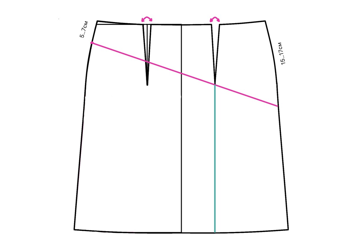 Детали юбки готовы. Обозначьте лицевую сторону выкроек.