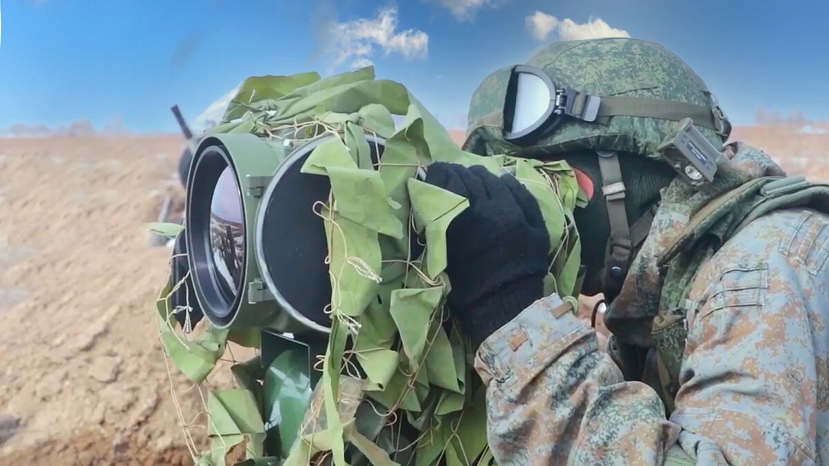 Боевой расчёт комплекса "Ирония" состоит из двух бойцов: один наблюдает через оптический прибор за местностью, а второй работает с компьютером: обрабатывает информацию, передает ее тем, кому она нужна в данный момент.