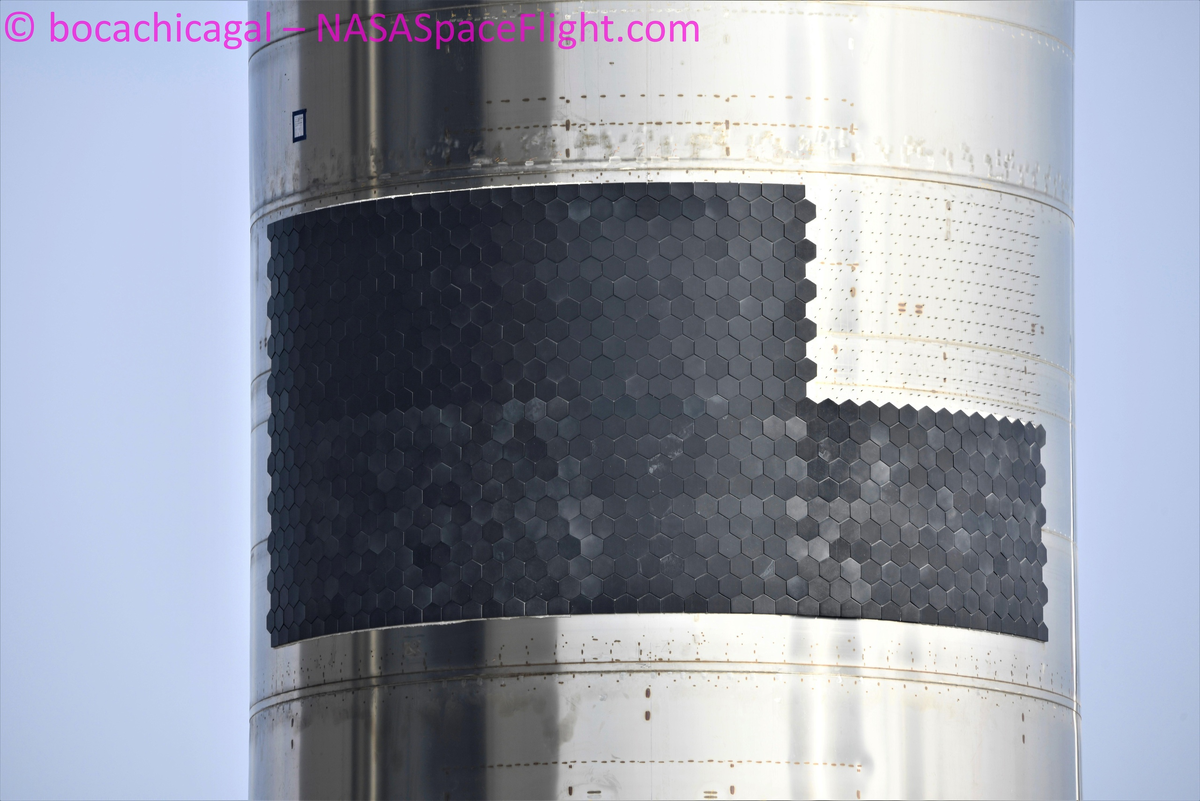 Прототипы SN8-SN15: Во время суборбитальной кампании Starship, на все прототипы, начиная с SN8 начали наносить небольшое количество плиток. Сначала их было совсем немного, но с каждым новым прототипом, их число значительно увеличивалось
