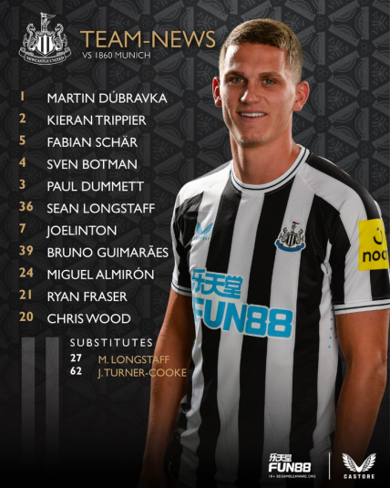 Вторая половина: Karl Darlow, Emil Krafth, Kell Watts, Dan Burn, Matt Targett, Matty Longstaff, Joelinton, Sean Longstaff, Miguel Almirón, Allan Saint-Maximin, Jacob Murphy.