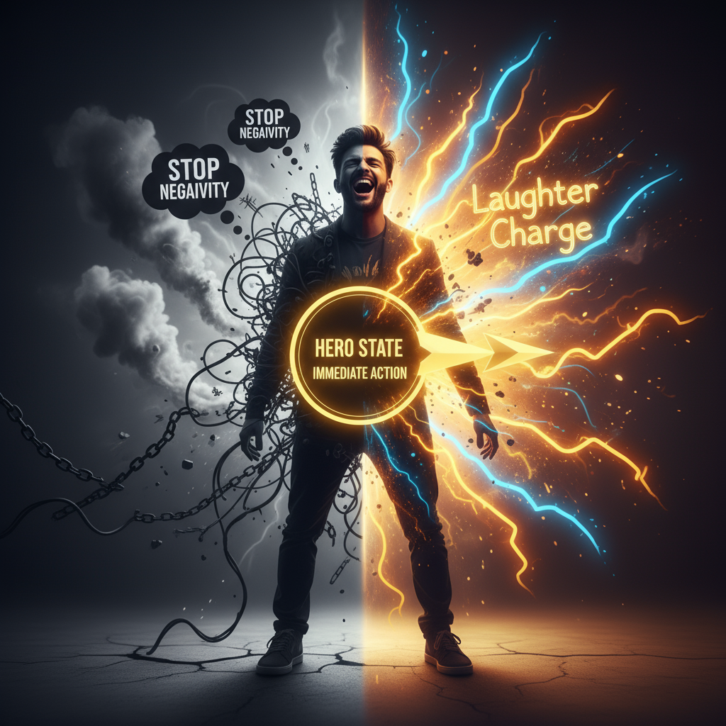 Искусственный, контролируемый смех (30-60 секунд) меняет биохимию вашего тела: снижает кортизол (стресс) и повышает дофамин (радость). Ваше подсознание не отличает "честный" смех от "искусственного" — оно просто реагирует выбросом гормонов счастья.