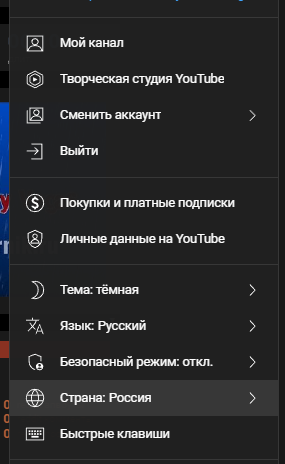 Заходим на страницу https://www.youtube.com/ Нажимаем по аватарке и меняем страну на Аргентину.