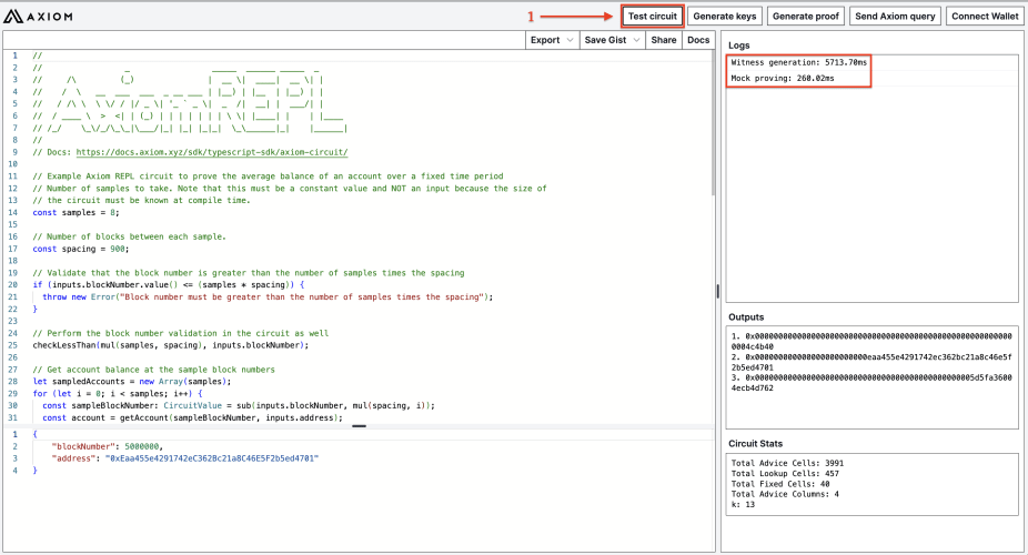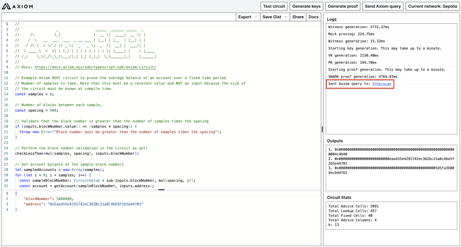 - Visit the Axiom REPL and connect your wallet on the Ethereum Sepolia network;