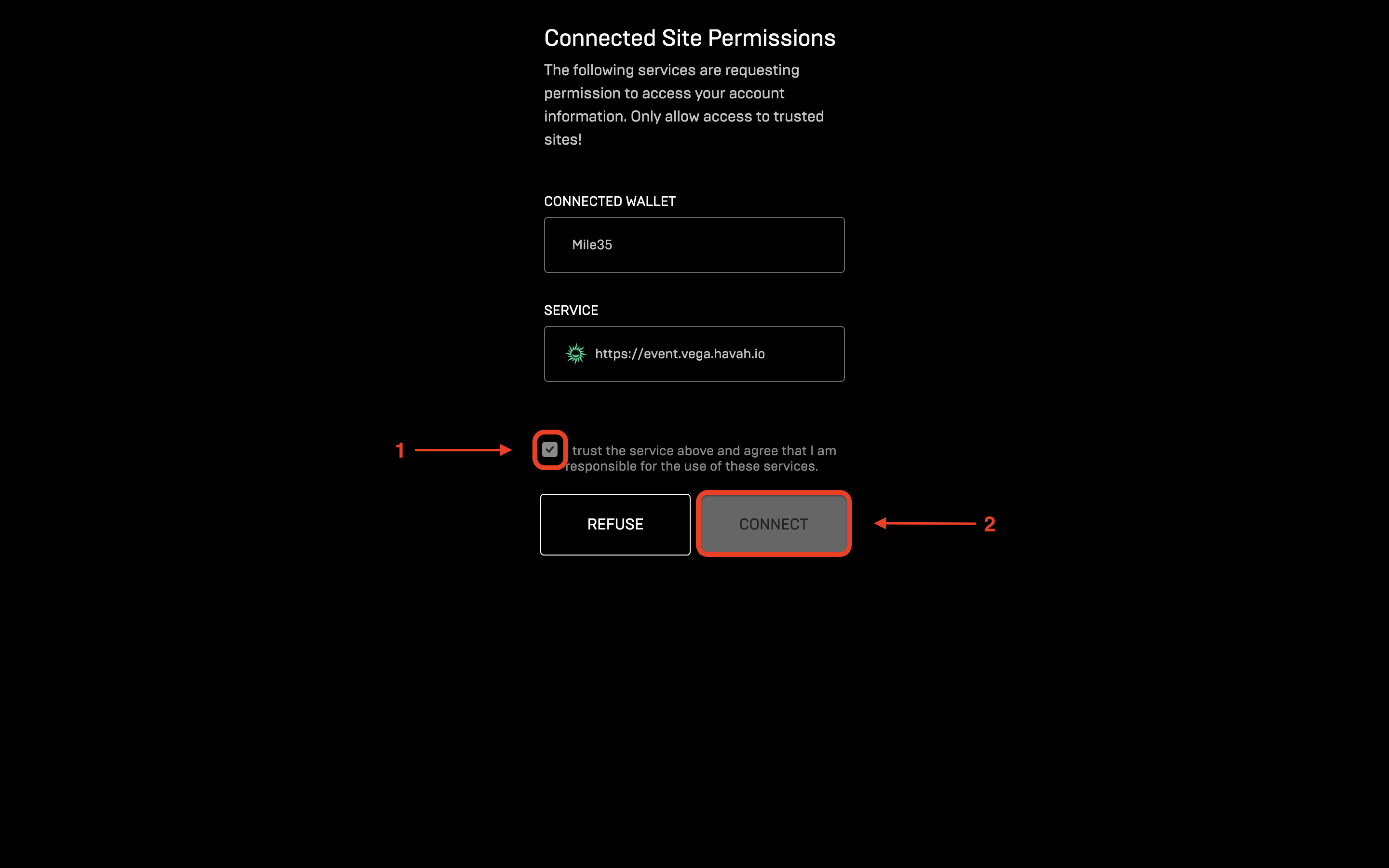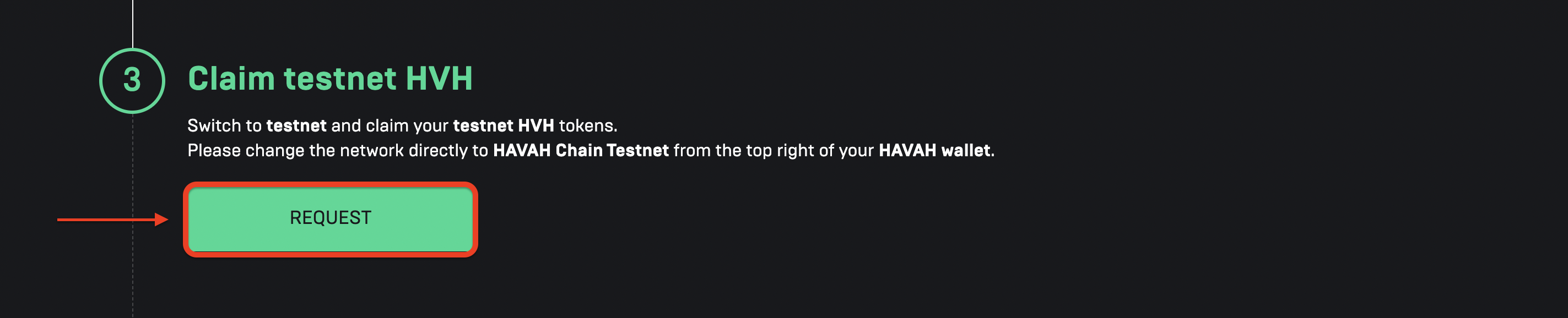 Switch to testnet, claim your testnet HVH tokens and click to "Request"