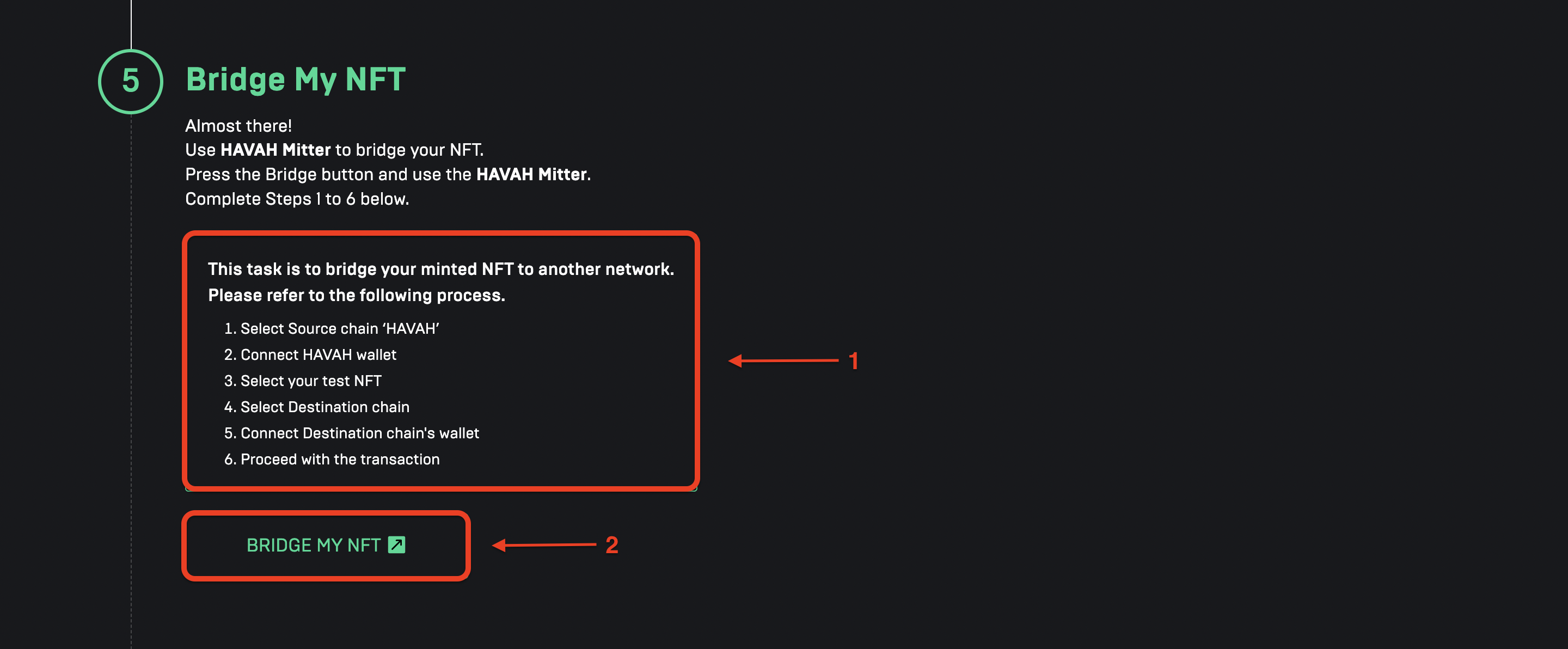 This task consists of connecting your mining NFT to another network. Please read the step-by-step instructions and complete everything by clicking on the "BRIDGE MY NFT" button;