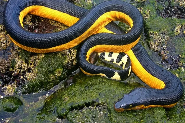 Итак, знакомьтесь – двухцветная пеламида (Hydrophis platurus), название которой переводится с латыни как плоскохвостая водяная змея. И как вы можете догадаться, обитает она в воде.