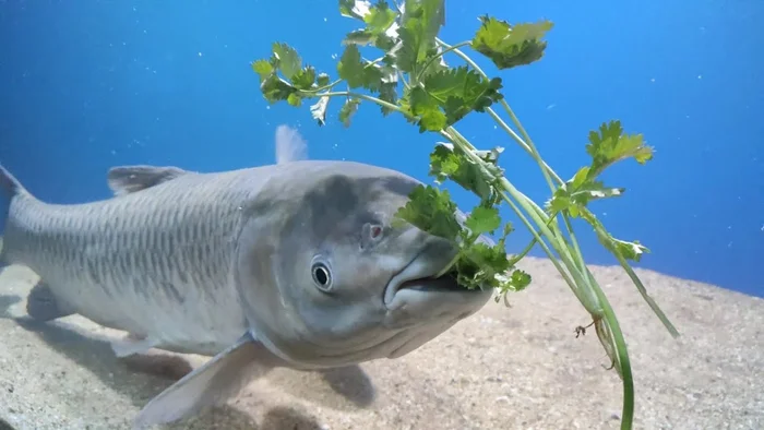 Уничтожает 20 кг травы в сутки. Этот гигант — настоящая газонокосилка от мира рыб!