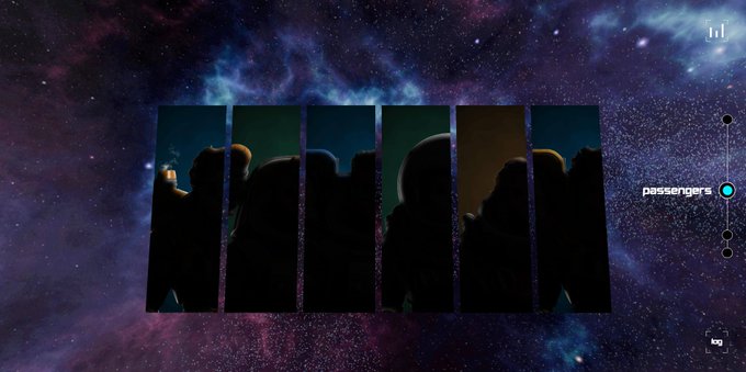 Passengers это большая и прописанная история, которая разворачивается вокруг вокруг исследователей неизвестной вселенной. Кроме того, на каждую часть истории в твиттере загружают качественные анимационные ролики. Там же постоянно публикуются логи исследований и неопознанные обломки аудиозаписей