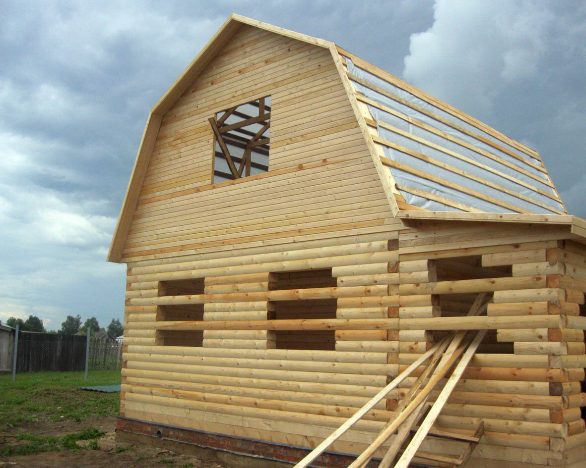 После установки сруба необходимо выдержать период усадки, который в среднем занимает от 7 до 12 месяцев, в зависимости от того, зимой или летом он был установлен. За этот период может произойти минимальная просадка дома в пределах от 2,8 до 4,5 см. Кроме того, на конструкцию устанавливается крыша, покрытая рубероидом или другими изолирующими материалами.
