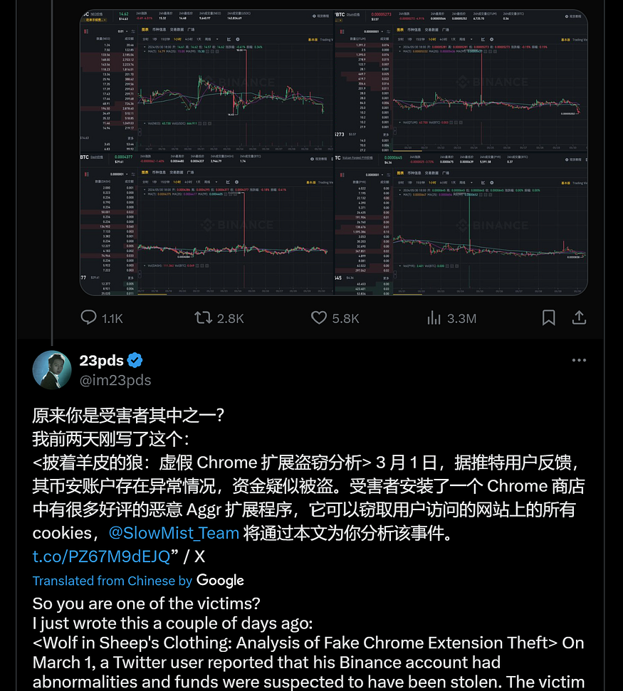 Используя украденные куки, расширение может имитировать вход пользователя в аккаунты на платформах (в нашем случае мошенник легко зашел на Binance трейдера), получая доступ к информации о балансе и истории транзакций.