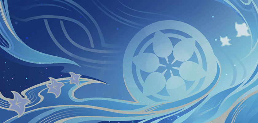 Пассивный навык Казухи — «Шелест ветра»(霞立つ松風), а шестое созвездие Странника — «Сюген: печальное колыхание завеса»(言祝·霞幕傾松風).