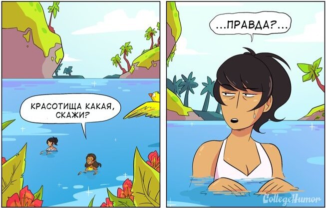 Когда вы идёте купаться в море, то не слишком видите, где находитесь. А потом иногда не можете найти своих на пляже, зато у вас высоки шансы завязать новые знакомства!