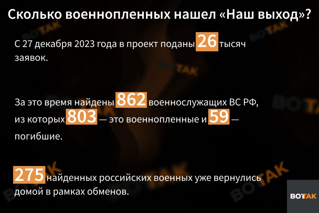 Через месяц после начала украинского наступления в Курской области, 13 и 14 сентября 2024 года, Россия и Украина обменялись военнопленными. Из 147 вернувшихся домой россиян 93 были найдены родными через проект «Наш Выход». Все они попали в плен во время боев на Курском направлении. Часть обменянных — срочники, «Вот Так» ранее установил личности как минимум троих из них.
