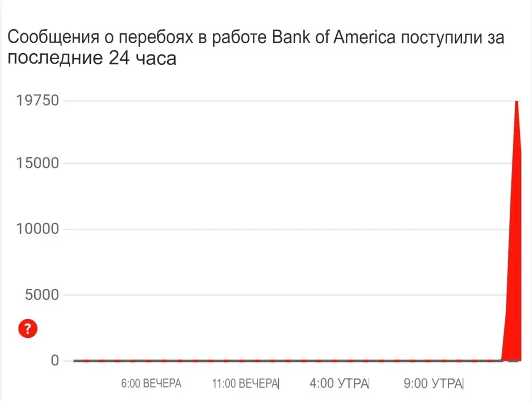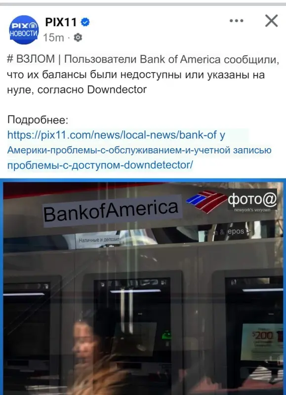 В новостях сообщалось, что Банк Америки столкнулся с общенациональными дефолтами, в результате чего у клиентов закончились остатки на счетах, и были видны только их долги.