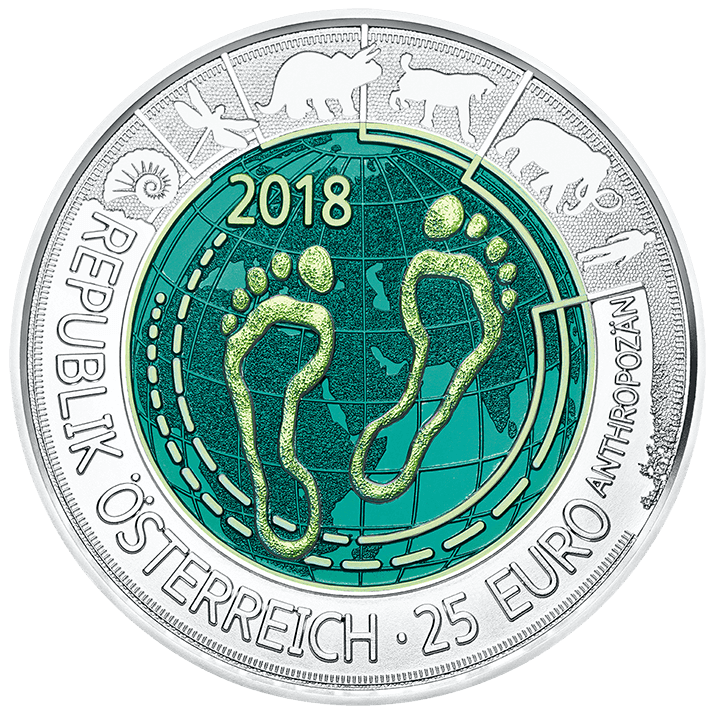 В пресс-релизе по случаю выпуска новых 25 евро Австрийский монетный двор рассказал о причинах выбора темы: «Человечество уже оставило неизгладимый след на Земле. Он настолько заметен, что многие ученые пришли к выводу о необходимости объявления новой геологической эпохи — антопоцена. Наиболее ярким примером человеческого влияния на природу нашей планеты стало загрязнение окружающей среды химическими и бытовыми отходами, продуктами выброса тепловых электростанций. Серьезный ущерб наносят радиоактивные элементы, оказавшиеся в атмосфере, воде и почве в результате тестирования и использования ядерного оружия. Эти и другие экологические проблемы детально отражены в дизайне монеты».