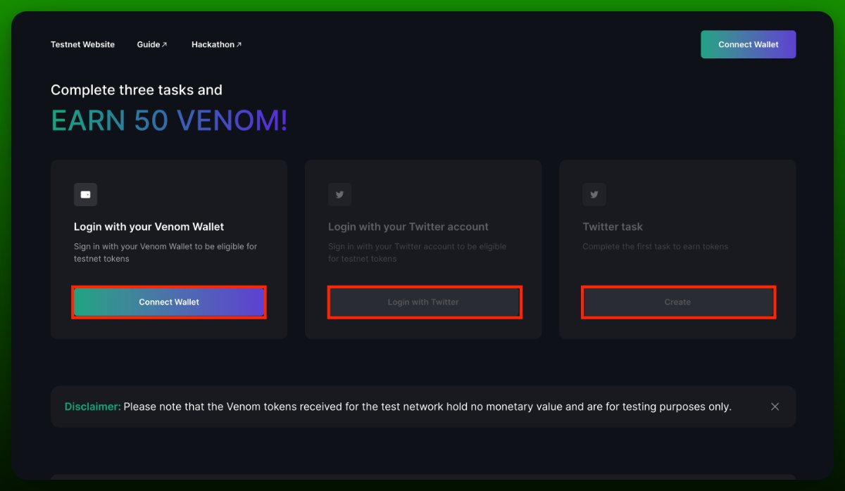 • Нажмите на "Присоединиться к тестовой сети Venom"