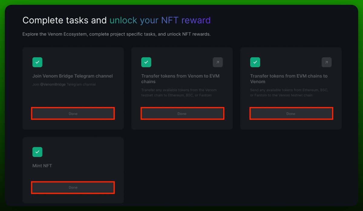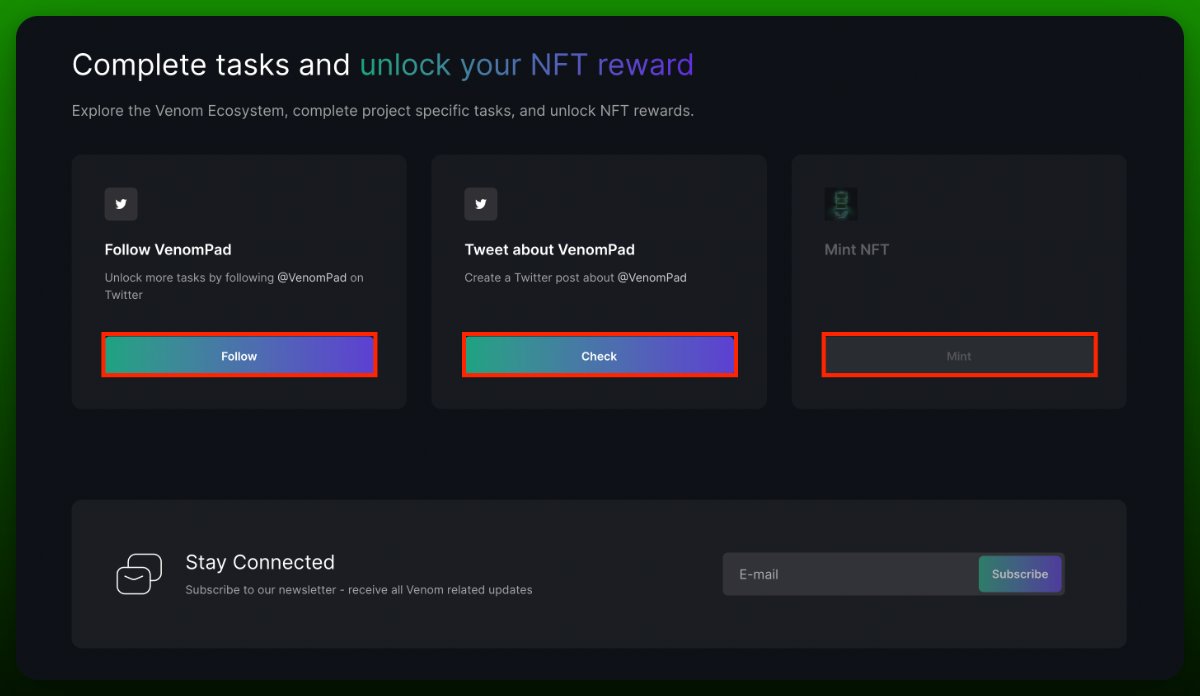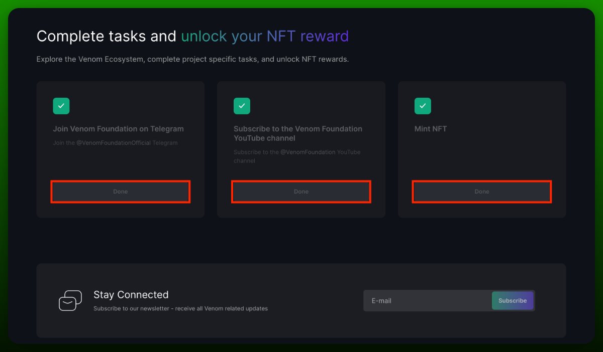 - • Перейдите на http://venom.network/tasks/venom-foundation