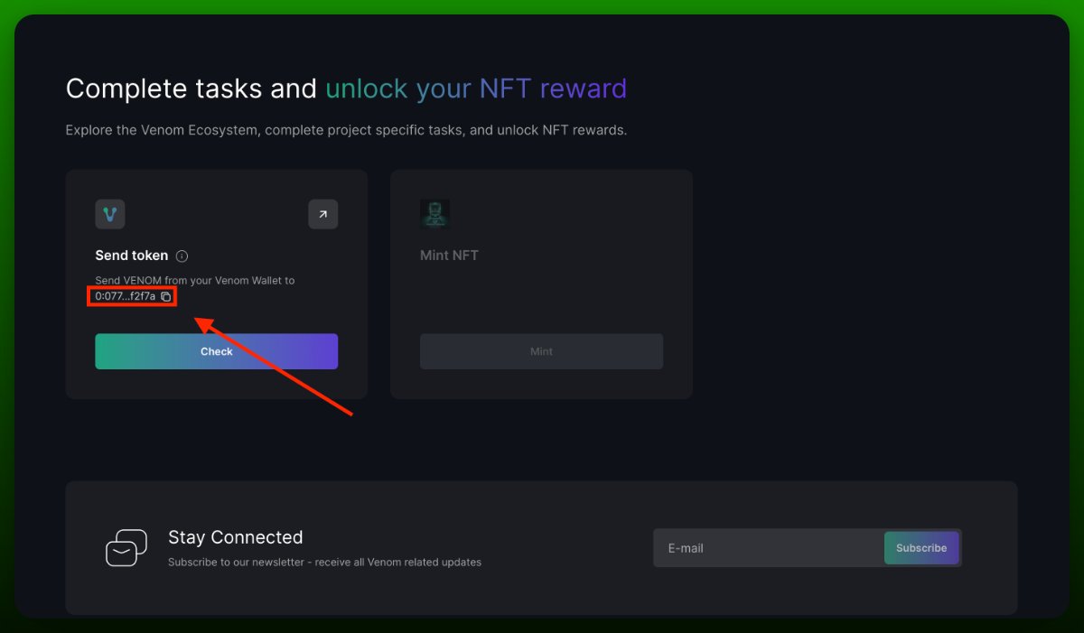 - • Отправьте любую сумму $VENOM на скопированный адрес