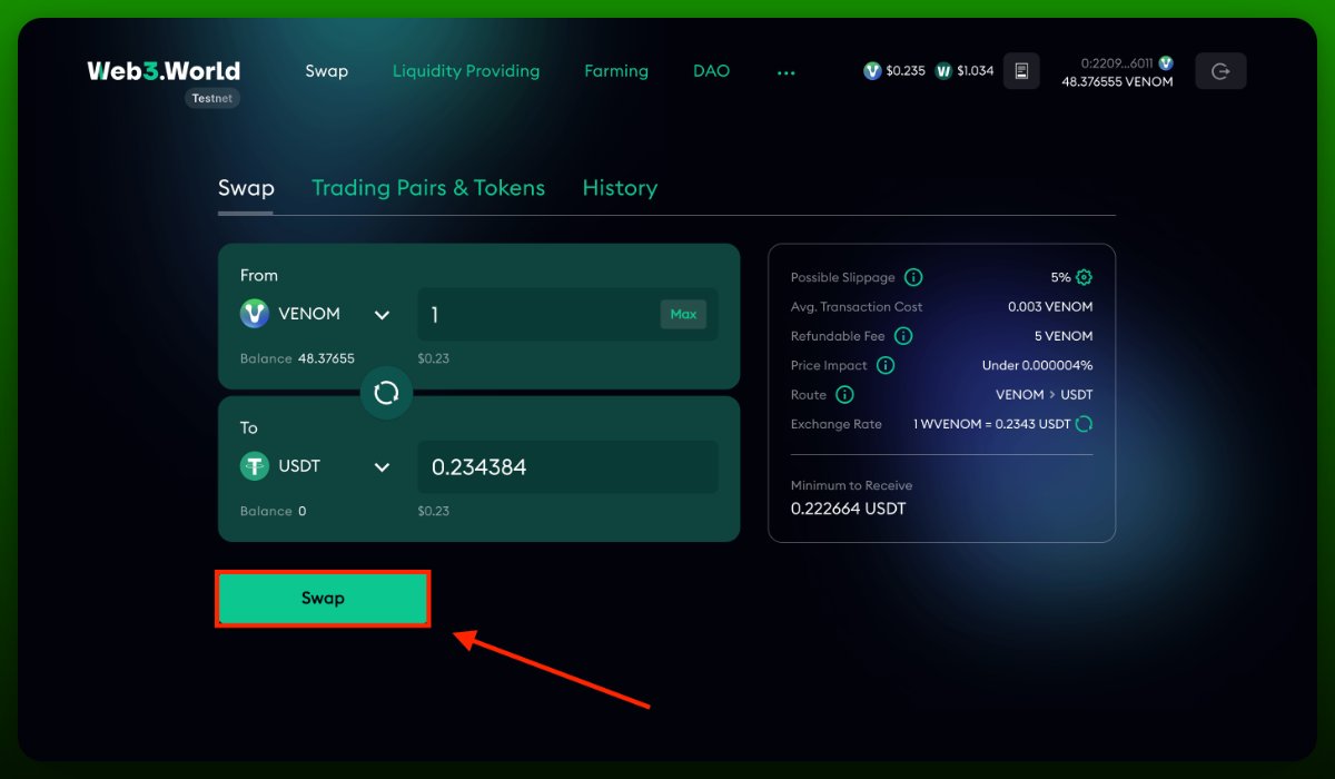 - • Обменяйте $VENOM на любой другой токен