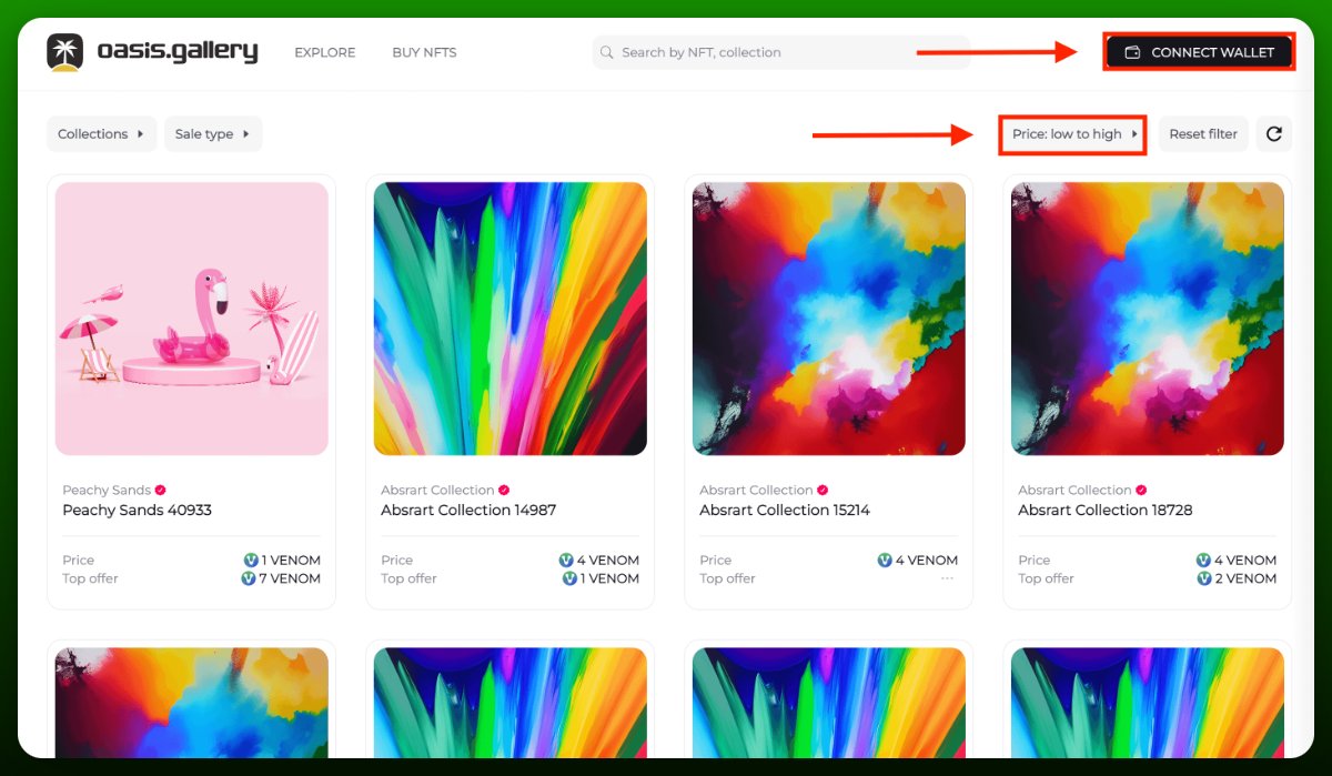• Перейдите на http://venom.network/tasks/oasis-gallery