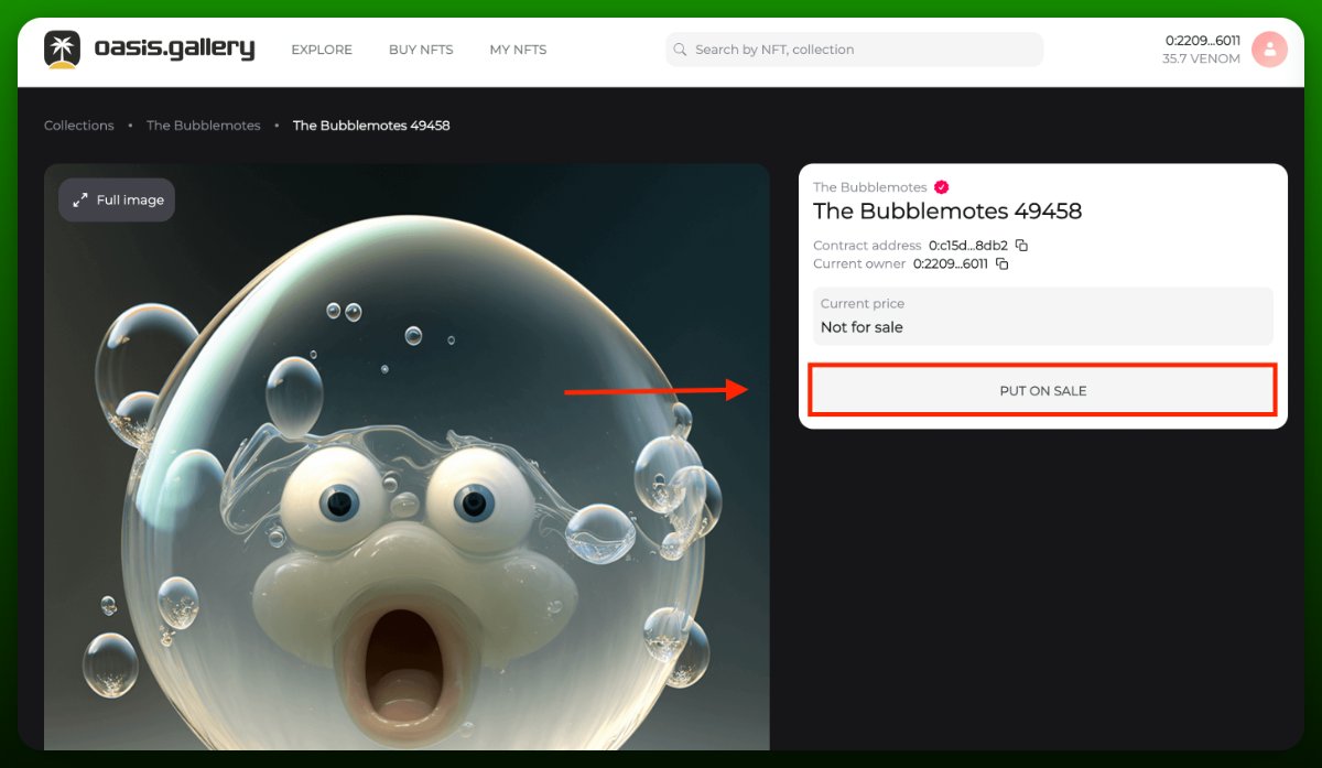 • Выставите ваш NFT на продажу
