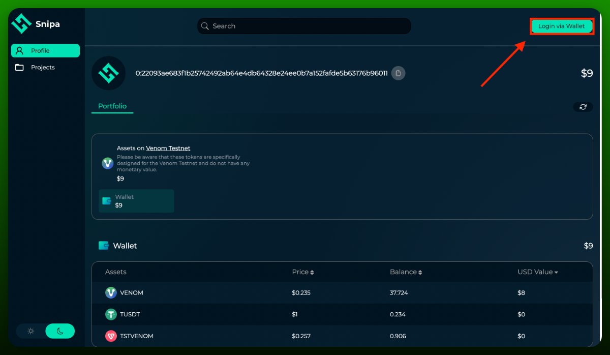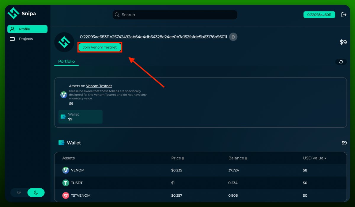 • Перейдите на http://venom.snipa.finance